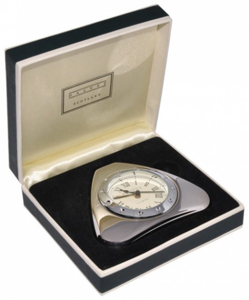 Дорожній годинник з оригінальним дизайном повертає нас в епоху 30-х років 20-го століття, тоді як і зараз люди прагнули не відставати від прогресу і в той же час цінували речі, які довели свою надійність. Дана модель годинника оснащена сучасним японським кварцовим механізмом і має вбудований будильник, так само вони обладнані секундною стрілкою і мають три мелодії дзвінка на вибір, а кришка годинника прикрашена латунною вставкою. Висота у закритому вигляді 85 мм, а у відкритому 70мм.