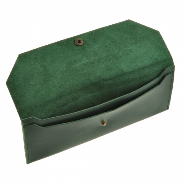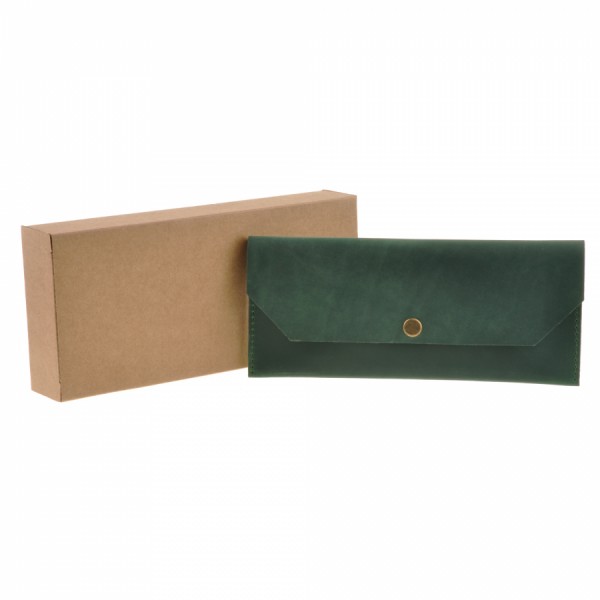 Стильний та лаконічний клатч-конверт. Досконалість у простоті, жодної зайвої деталі, лише зручність та функціональність. Готівкові картки, невеликий блокнот, ручка та телефон завжди під рукою, у зручному аксесуарі. Виготовлено повністю вручну із натуральної шкіри (2мм), використовується якісна металева фурнітура, застібається на кнопку. Клатч універсальний, він підійде як чоловікам, і жінкам.