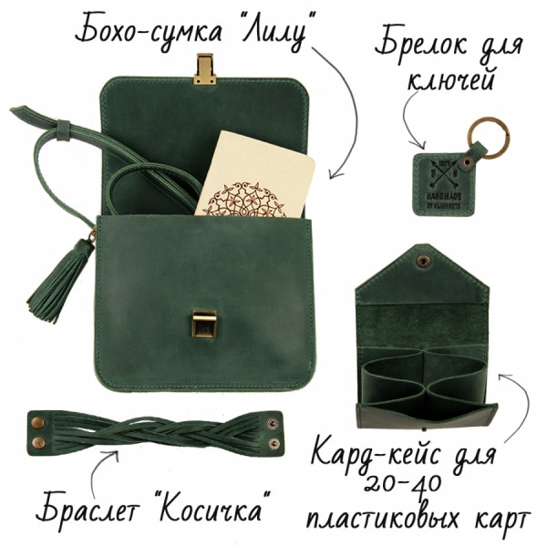 - сумка, кард-кейс, браслет, брелок, открытка, крафтовая упаковка.