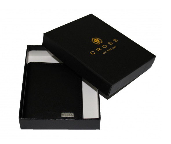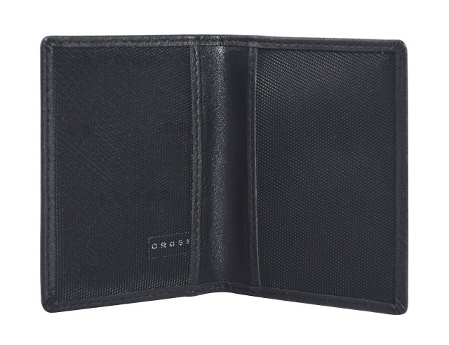 Чохол для документів CROSS Century FOLDED ID CARD CASE вертикальний, натуральна шкіра. Колір чорний, товщина 9мм, ширина 7,8см, висота 9,5см. 2 сітчасті кишеньки.