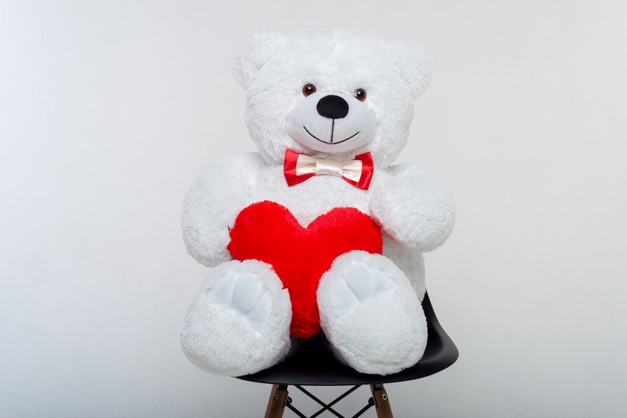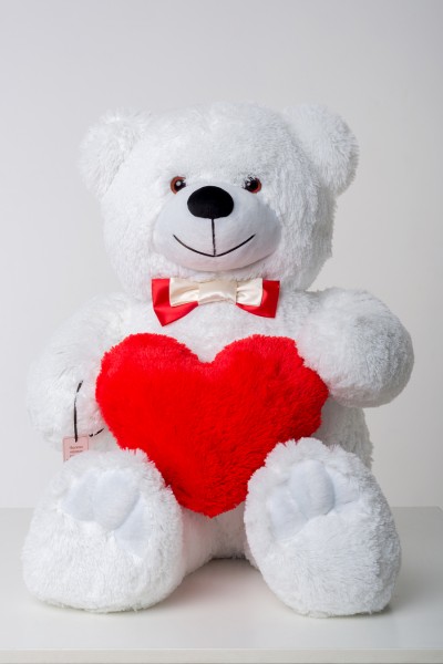 Характеристики товару Ведмедик з серцем 110 см - білий