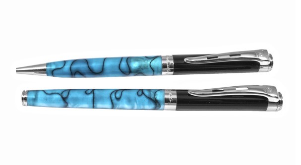 Комплект ручок (кулькова + ролер) Pierre Cardin, синій мармур
