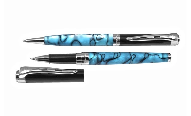 Характеристики товару Комплект ручок (кулькова + ролер) Pierre Cardin, синій мармур