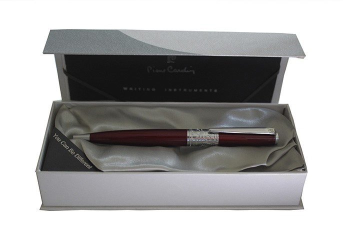 Кулькова ручка Pierre cardin REX PC2203BP стриманого темно-червоного кольору виконана з металу та відрізняється плавністю ліній, корпус декорований смугою сріблястого металу шириною 2 см з візерунком, що символізує вічний рух та написом You can be different ("Ви можете бути різними"), виконаний гравіювання. Завдяки циліндричній формі корпусу, ручка зручно лежить у руці, не викликає втоми та дискомфорту. Завдяки поворотному механізму ручка прослужить своєму власнику дуже довго. Дозволяє писати до 600 сторінок формату А4 завдяки стрижню Pierre Сardin з великим обсягом.
