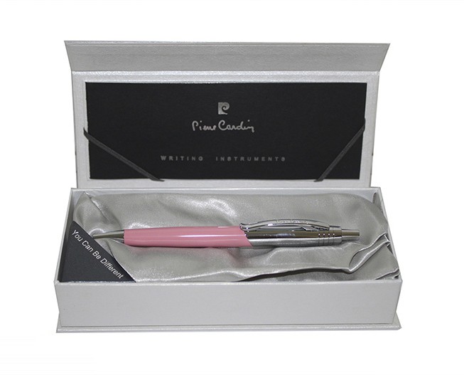 Кулькова ручка Pierre Cardin COUPS PC5905BP виготовлена з металу, частина корпусу покрита акриловим лаком рожевого кольору. Ручка має надійний натискний (кнопковий) механізм. Ручка відрізняється плавністю ліній. Завдяки циліндричній формі корпусу, ручка зручно лежить у руці, не викликає втоми та дискомфорту. Дозволяє писати до 600 сторінок формату А4 завдяки стрижню Pierre Cardin з великим обсягом.