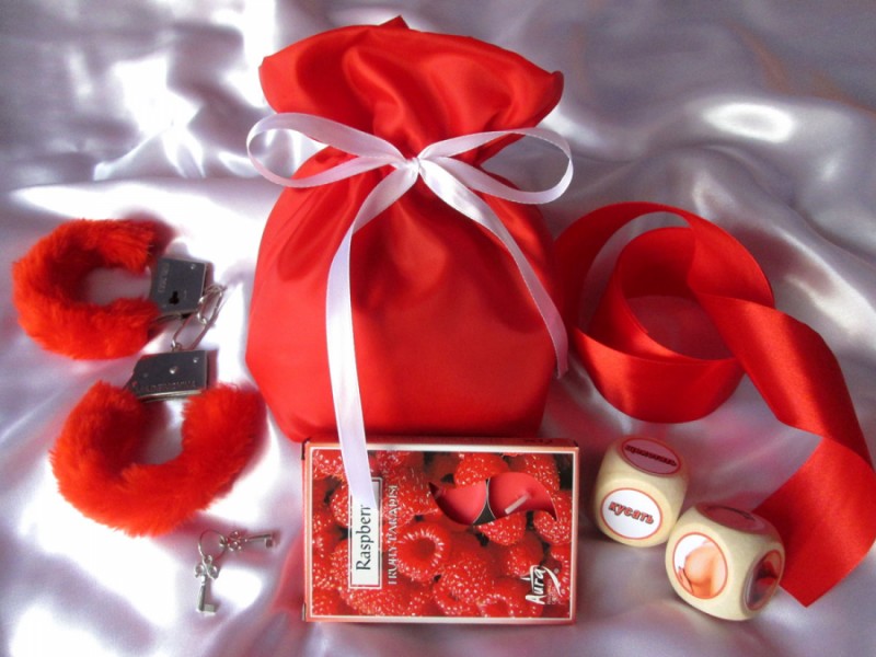 У комплекті: наручники для любовних втіх, кубики «Горячки», ароматизовані свічки 6 шт., Стрічка-пов'язка на очі, подарунковий мішечок.