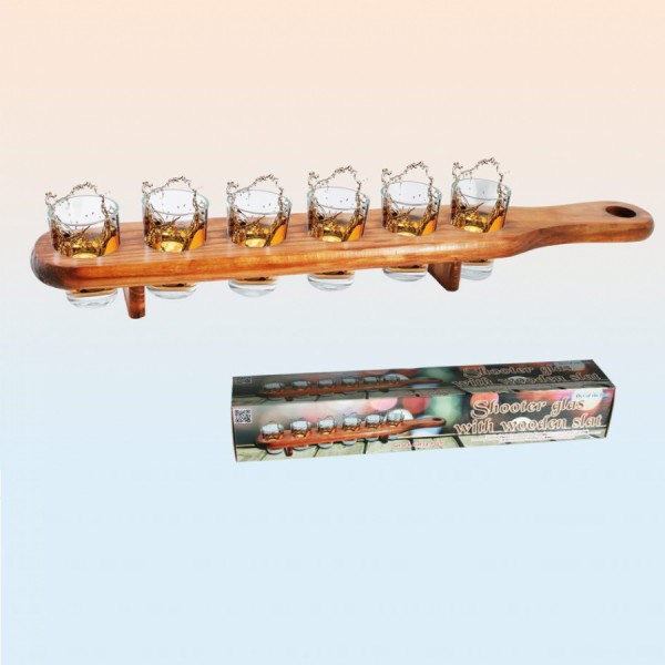 Набір чарок "Shooter" просто незамінний на галасливих вечірках та пікніках. Зручна дерев'яна підставка надійно вміщує 6 скляних чарок і допоможе їх швидко донести до гостей. Така подача не лише зручна, а й дуже ефектна.