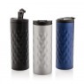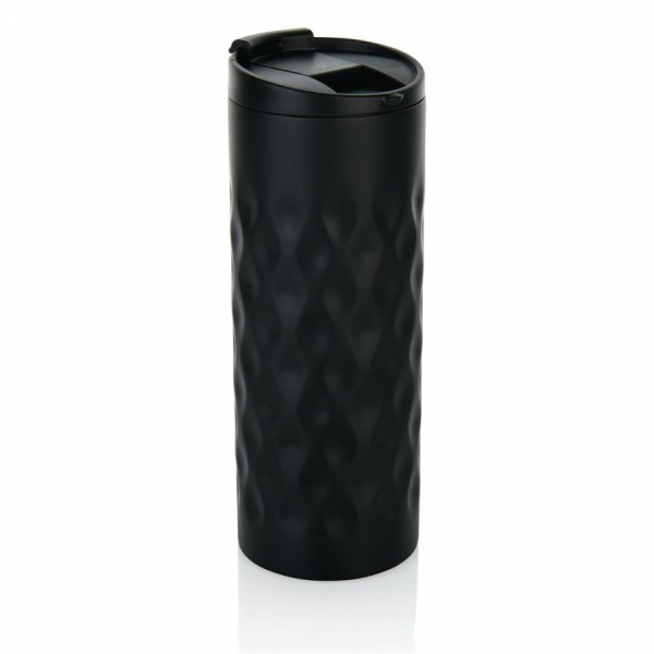 Герметичний термостакан з подвійними стінками, виготовлений з нержавіючої сталі, має дуже стильний оригінальний дизайн, що приваблює строгою геометрією форм і металізованим чорним забарвленням.
