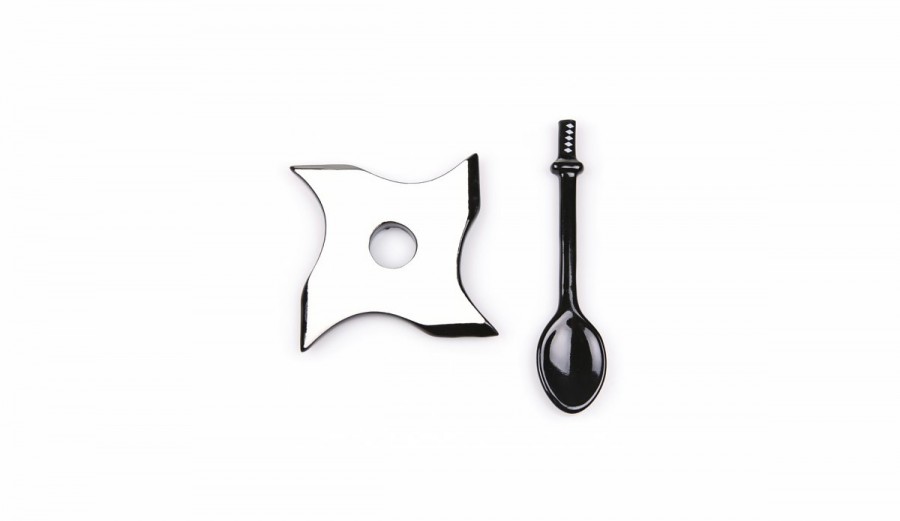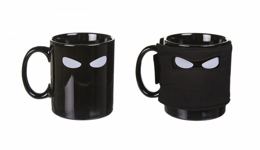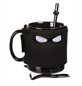 Чашка Ніндзя – це дуже незвичайна річ. Вона комплектується всіма атрибутами для комфортного чаювання, у тому числі теплоізолюючою маскою, ложкою у формі самурайської катани та кастета у формі сюрікену. Весь комплект є єдиним і логічно завершеним дизайнерським твіром. Прекрасний подарунок для любителів мінімалізму, зваженості, цілеспрямованості та зібраності.
