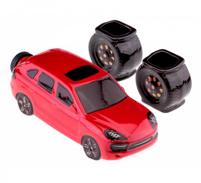Ідеальний подарунок для поціновувачів потужних та розкішних машин. Порш Каєн є флягою для Вашого вмісту, а чарки у вигляді коліс перетворюють цей комплект на незвичайний і дивовижний подарунок!