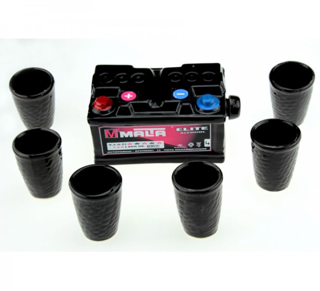 У наборі йде фляга у вигляді акумулятора та 6 чарок-кубків. Власник такого подарунка буде приємно здивований оригінальністю задуму!