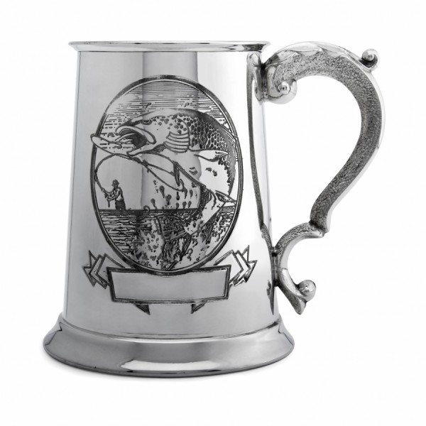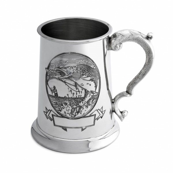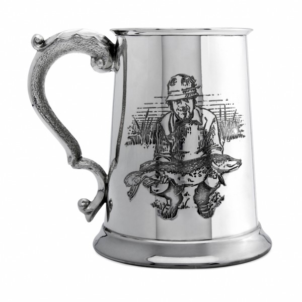 Олов'яний кухоль для пива з гравіюванням сцени риболовлі має спеціально відведене місце для особистого побажання або саме оформлення. Об'єм кружки 570 мл (одна імперська пінта). Ручна робота. Зроблено в Шеффілд, Великобританія. Торгова марка English Pewter. Товар поставляється у фірмовій коробці English Pewter чорного кольору.