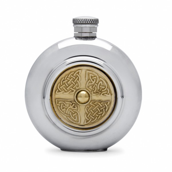 Кругла олов'яна фляга з візерунком ідеально підходить для справжніх поціновувачів віскі або інших міцних напоїв.
