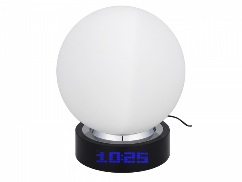 Багатофункціональна настільна лампа з білого матового скла зі стилізованим зображенням земної кулі стане чудовим подарунком для всіх мандрівників. Лампа чудово доповнить інтер'єр туристичної агенції, а вбудований годинник, термометр та календар – додатковий бонус до такої оригінальної речі.
