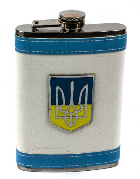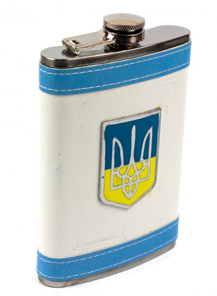 Фляга з харчової нержавіючої сталі обтягнута шкірою України.