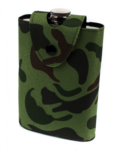 Фляга з нержавіючої сталі в комуфляжному чохлі.