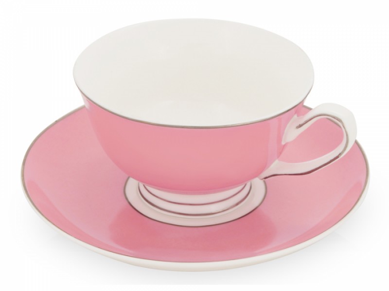 Дивовижний, ніжний відтінок чайної пари із сріблястими облямівками та обідками. На фарфорові чашку та блюдце можна нанести логотип компанії. Відмінний подарунок для колеги чи співробітника, а також для близької людини. Колір в асортименті. Чайна пара упакована у подарункову картонну коробку у вигляді футляра-циліндра у колір посуду. Об'єм чашки 200 мл.