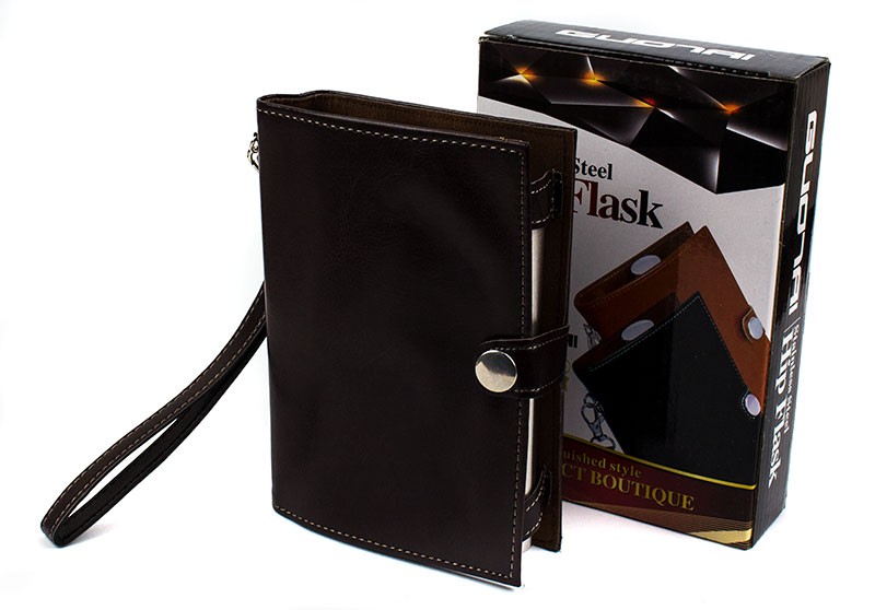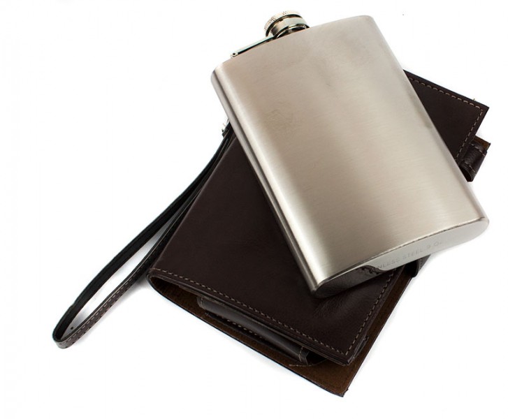 Характеристики товару Фляга з харчової нержавіючої сталі у шкіряній барсетці