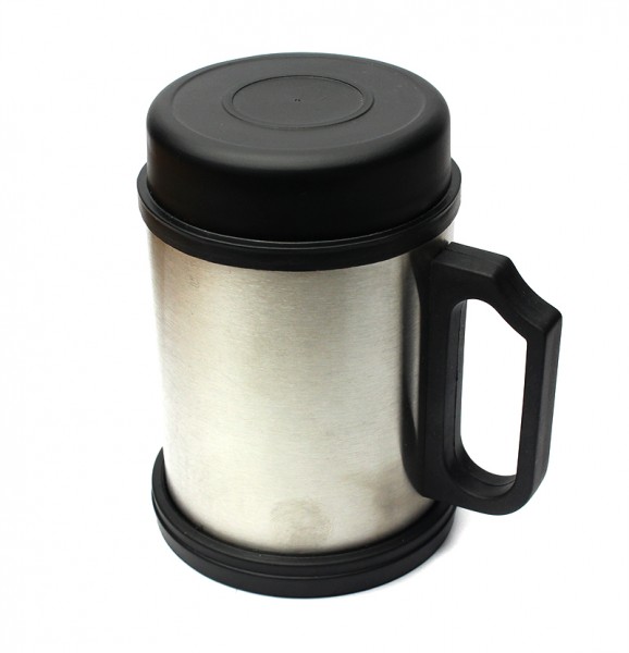 Термокухоль з подвійними стінками відмінно зберігає тепло, не обпалює губи. Кришка з термостійкого пластику оберігає від проливання і не дає охолонути напою. Ручка надійно приєднана до корпусу за допомогою точкового зварювання. Полірована поверхня легко миється.