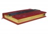 Французька складова палітурка ручної роботи виконана з комбінації натуральних шкір (шкіра теля «Robbat rosso», шкіра «Robbat nero» виробництва італійської шкіряної фабрики Carisma»). Обкладинка книги оформлена комбінацією багаторівневого об'ємного тиснення: рельєфного золотого з використанням фольги «Luxor 240» та глибокого блінтового. Обріз вручну полірований і позолочений сусальним золотом.