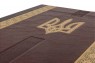 Французька складова палітурка ручної роботи виготовлена з комбінації натуральної шкіри (шкіра «Robbat Cognac», шкіра «Robbat Wisky» виробництва італійської шкіряної фабрики «Carisma»). Обкладинка дворівнева, оформлена глибоким блінтовим та рельєфним золотим тисненням (фольга "Luxor 240"). Обріз блоку вручну полірований та позолочений сусальним золотом.