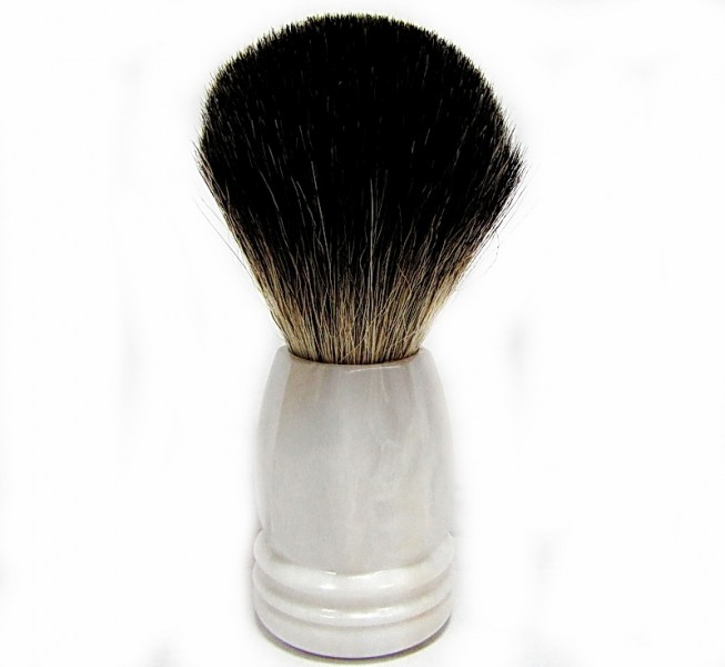 Помазок для гоління з ворсом із шерсті борсука, довжина ворсу на помазці 50 мм, висота ручки 50 мм, колір ручки білий.