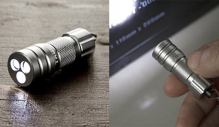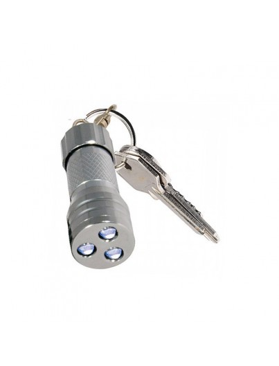 Водонепроницаемый брелок-фонарик с 3-мя светодиодными лампами яркостью 5 лм каждая и выходной мощностью 22 Вт, с поворотным механизмом включения. На светодиодные лампочки дается пожизненная гарантия. В комплекте 4 батарейки. Изготовлен из авиационного алюминия с хромовым покрытием.