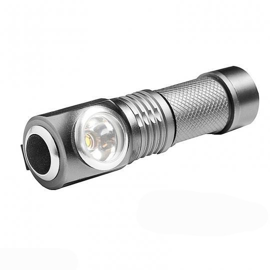 Карманный фонарик с кнопкой включения наверху и мощным светодиодом яркостью 60 лм на боковой стороне. Расчитан на 4 часа непрерывной работы, оснащен клипсой. Питание 1 батарейка АА. Материал: анодированный авиационный алюминий с ребристой поверхностью.