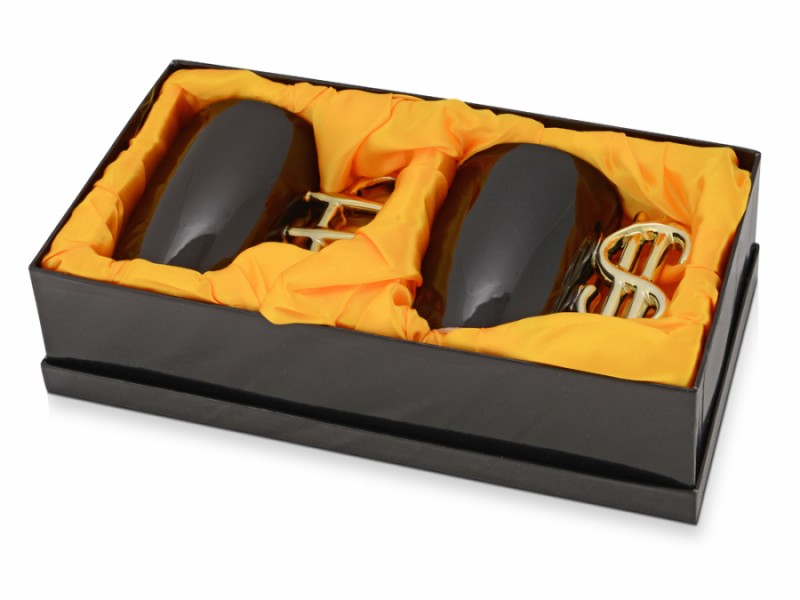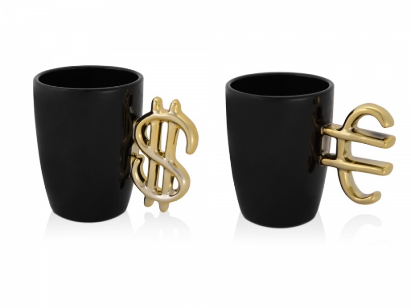 Незвичайний чайний набір на дві персони сподобається людям, діяльність яких безпосередньо пов'язана з фінансами, а також керівникам і партнерам компанії. У набір входять два кружки на 300 мл із ручками у вигляді долара та євро. У комплекті йде подарункове пакування.