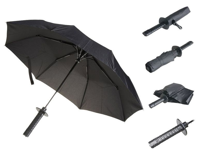 Японська культура овіяна ореолом загадковості і завжди привертала до себе увагу. А самурайські мечі вважаються чи не найкращою холодною зброєю в історії. Дизайнери не змогли обійти цю тему та розробили парасольку у вигляді кинджала танто. Кожен чоловік – це вроджений воїн, навіть якщо воювати йому і не доводилося ніколи. А це означає, що у кожного лицаря чи самурая під рукою завжди має бути відповідна зброя. Парасолька "Кинжал Танто" - зброя, яка бореться з опадами, поганим настроєм та нудьгою. Ручка аксесуара повторює рукоятку японського меча, і перебуваючи в сумці або рюкзаку, ця незвичайна парасолька дивуватиме своїм виглядом перехожих. Компактні розміри парасольки з ручкою у вигляді катани дозволяють носити її із собою, не відчуваючи дискомфорту. Парасолька катана стане вельми оригінальним подарунком для чоловіка, який упевнений у своїй силі та цінує незвичайні презенти.