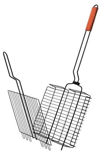 Дерев'яна ручка зручна у використанні. Конструкція грат дозволяє готувати страви з м'яса, риби, овочів та ін. на твердому паливі (вугіллях).