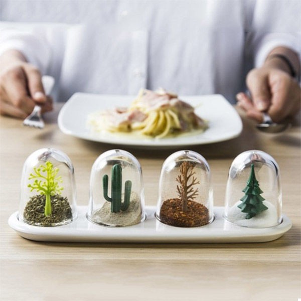 Незвичайний набір для спецій прийдеться до місця на будь-якій кухні. Секрет у тому, щоб до кожного сезону додати свій вид приправ, що найбільше підходить доповнює. Головна творча ідея кожного з представлених наборів полягає в тому, щоб розсортувати кухонні приправи та спеції по порах року відповідно до їхнього кольору та смаку.