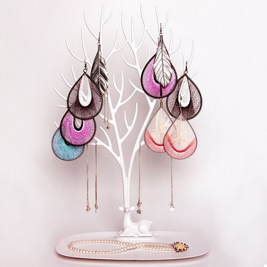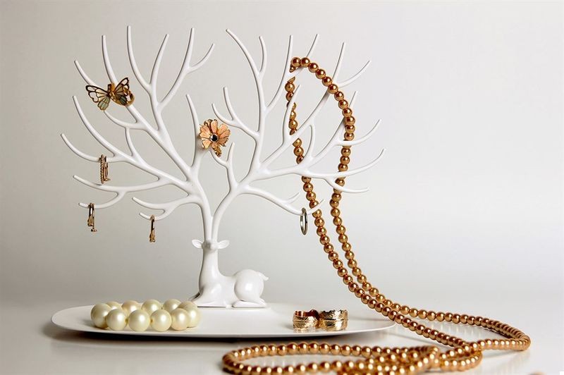 Можна розташовувати прикраси як на гілочках, так і на підставці. Вона майже плоска, але все-таки краю трохи піднесені, як і простір навколо оленя, що лежить. Ідеально для того, щоб покласти сонячні окуляри або годинник. А ось кільця краще повісити на найкоротші виступи рогів: так вони точно нікуди не покотяться. Звичайно, всі виступи спрямовані вгору, виключаючи можливість випадково змахнути якусь прикрасу з підставки.