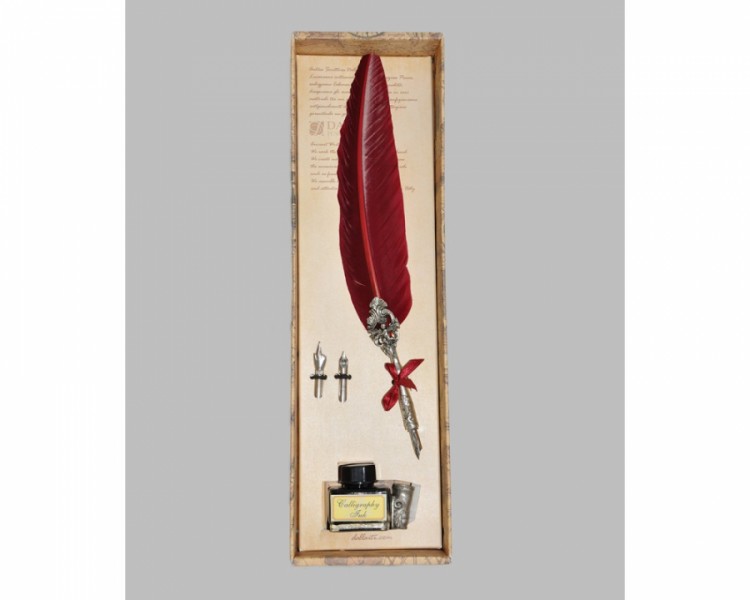 Перо упаковано в подарунковий футляр, який фіксує перо вузькою атласною стрічкою, що точно підходить у тон.