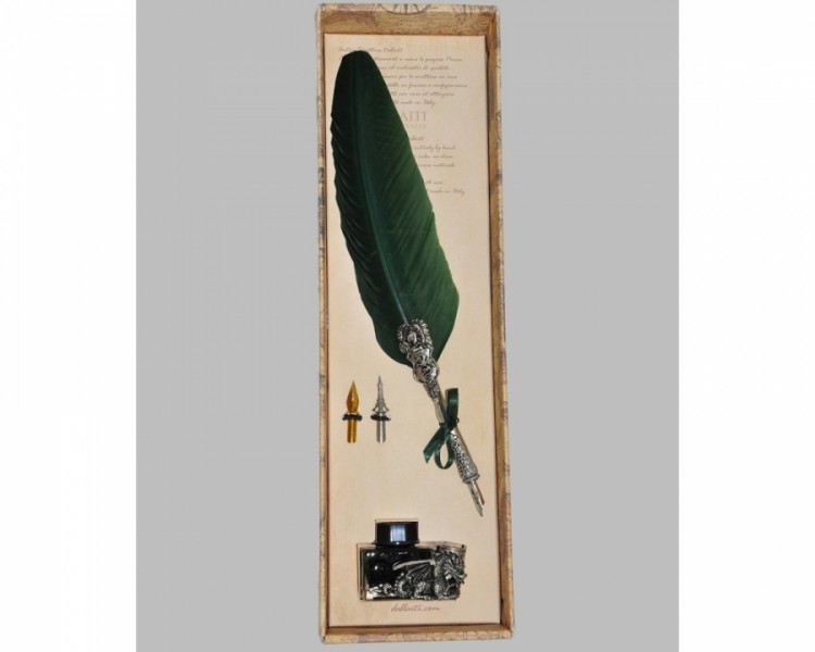 Перо упаковано в подарунковий футляр, який фіксує перо вузькою атласною стрічкою, що точно підходить у тон.