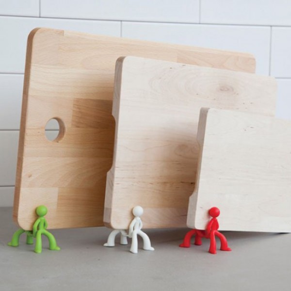 Зберігання обробних дощок вимагає сухості. Якщо, звичайно, Ви бажаєте, щоб дошки прослужили Вам досить довго. Підставка для обробних дощок від компанії Peleg Design чудово справляється з цим завданням! Ця підставка дуже оригінальна, і подібні дрібниці для кухні здатні зробити всю кухню набагато більш незвичайною та веселою. Цих міцних хлопців, щоправда, дрібницею не назвеш – вони вдвох можуть тримати будь-яку дошку на вазі, щоб дати можливість повністю висохнути.