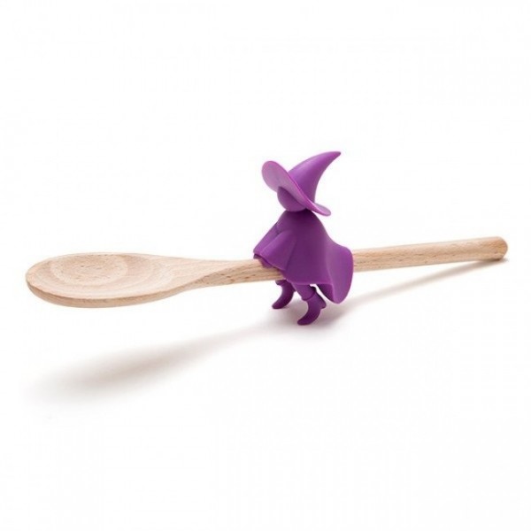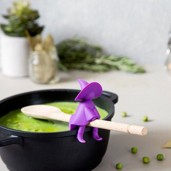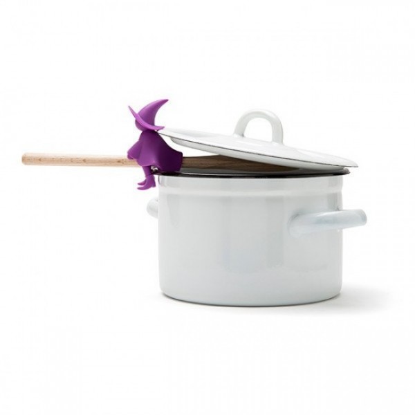 Невелика фіолетова відьма може бути досить корисною. Вона поєднує в собі тримач для кришок каструль та тримач для ложок. Подібні дизайнерські речі для кухні відмінно піднімають настрій та допомагають у готуванні.