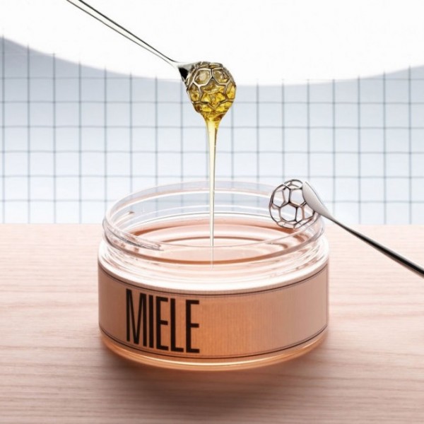 Основою цієї стильної ложки є маленька куля, шестигранні осередки якої нагадують бджолині стільники. Але Miriam Mirri позиціонує Acacia не просто як ложку для меду, а як прикрасу столу, objet bijou, тому двом осередкам вона надала форму зірок. Куля з стільниками кріпиться на пелюстку довгої ручки, тому залазити в банку з медом дуже зручно.