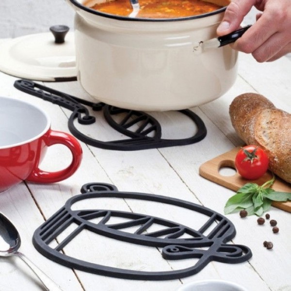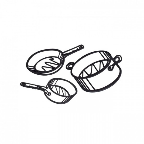 Підставка під гаряче Сковорода глибока у вигляді ескізу від Peleg Design виконана із силікону та витримує високі температури так само, як і предмет, з якого вона змальована (до 230 градусів Цельсія). А ще Ви можете використовувати її як декор, повісивши на стіну поруч із рештою кухонного начиння.