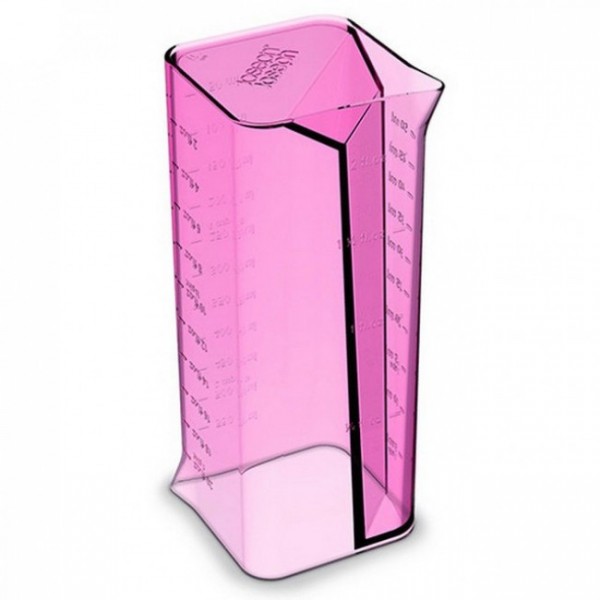 Стильна мірна склянка нестандартної конструкції – чудова альтернатива різним стаканчикам, ложкам та чашкам, які традиційно використовуються для дозування сипучих продуктів та рідин. Унікальність цієї мірної склянки в її двокамерності. Фактично, в одній моделі поєднані дві склянки з точними поділками, які забезпечать максимальну точність вимірювання для ідеального приготування страв: одна ємність великого об'єму від 50 до 550 мл та друга менша – від 5 до 50 мл. Стакан виготовлений із міцного пластику, який витримує температуру до 90ºC. Написи вимірювань на стінках великі, добре читаються і не стираються, а невеликий розмір склянки дозволить заощадити місце в шафі.