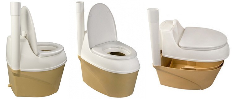 Принцип дії: у верхній бак засипається спеціальна суміш торфу. Після користування туалетом продукти життєдіяльності людини повністю покриваються торф'яною сумішшю, виключаючи появу неприємних запахів і забезпечуючи компостування вмісту туалету. Встановивши один раз туалет у тому місці, де Вам потрібно, вже більше не знадобиться пересувати його, т.к. всі дії, пов'язані з його обслуговуванням, не вимагатимуть рухати туалет з місця на місце, від'єднувати вентиляційний стояк або дренажну трубу – достатньо лише зняти верхню частину туалету.