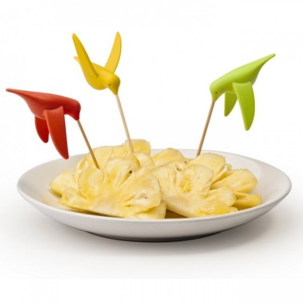 Життєрадісний набір для канапе Humming Bird від дизайнерського бренду Qualy з Таїланду складається із шести симпатичних колібрі. Він допоможе прикрасити будь-яке свято та створить особливу, легку атмосферу за Вашим столом! А в поєднанні з такими ж маркерами для келихів Humming Bird Mark справлять фурор!:)