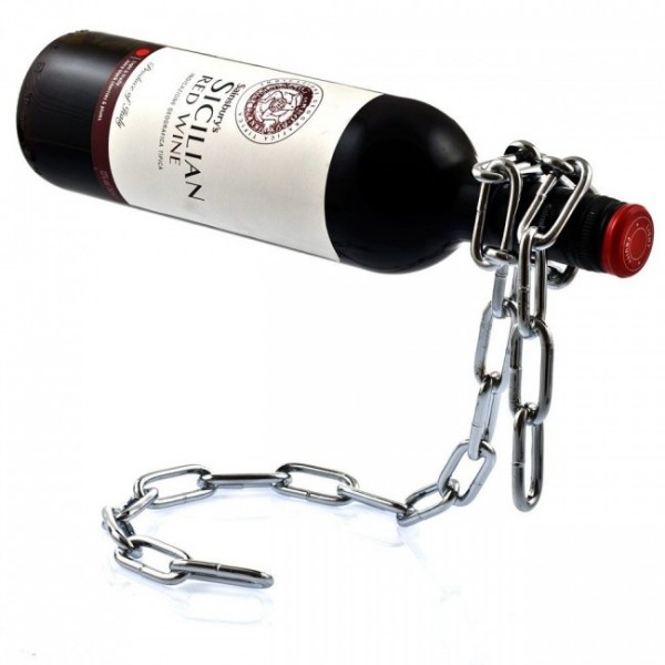 Увага, фокус! Вам не потрібно пити багато вина, щоб побачити пляшку, що літає:) Просто подивіться на цей хромований залізний ланцюг, який використовує принцип балансу, щоб створити таємничу і хвилюючу ілюзію того, що пляшка вина плаває в повітрі! Такий оригінальний гаджет для бару та кухні не залишиться непоміченим серед Ваших гостей та обов'язково викличе у них непідробне здивування!