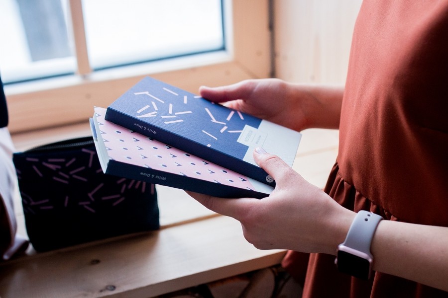 - Обкладинка із фактурного дизайнерського картону, сторінки блоку молочного кольору.