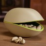 Практично-симпатичне рішення для сервірування снеків: фісташок, чіпсів, оливок та інших смаколиків! Просто розділіть блюдо у вигляді фісташки на дві половинки: у Вас вийде ємність для снеків та ємність для кісточок, шкаралупи та очищення. Стане в нагоді і для того, щоб здивувати гостей, і щоб погризти горішки на самоті на дивані.