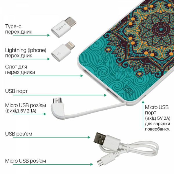 Характеристики товару Портативна батарея. Повербанк 10000mah " Золоті візерунки "