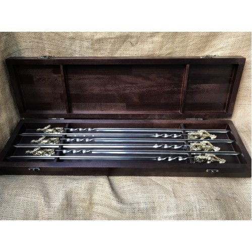 Характеристики товару Комплект шампурів " Козак " у кейсі з натурального дерева
