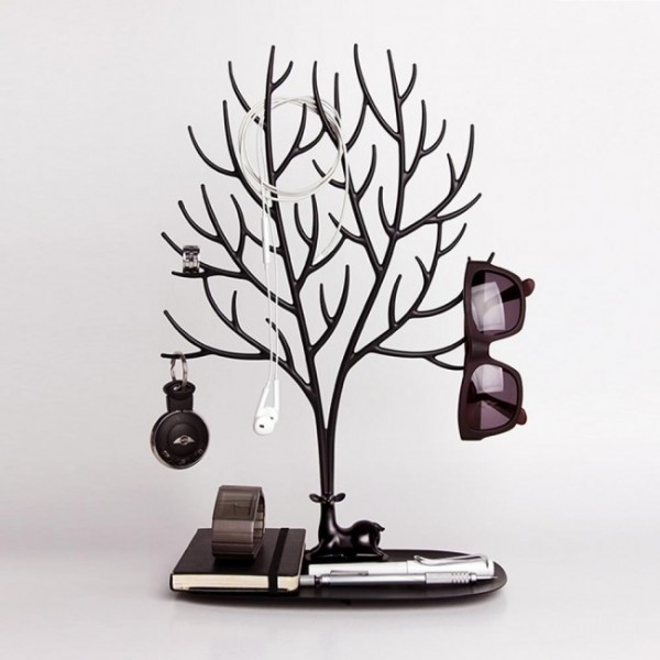 Будь-якій дівчинці, дівчині чи жінці відомі такі неприємності, як сережка без пари, як ланцюжок, який сплутався або браслет, який невідомо де зник, хоча "я його поклала ось тут":) Порядок можливий не тільки в казці! Дизайнери тайської дизайн-студії Qualy спеціально для Вас створили цього казкового оленя з такими фантастичними рогами, який привнесе у Ваш будинок тільки позитивні емоції! Ця яскрава підставка підійде для зберігання будь-яких дрібниць: від ювелірних прикрас та косметики до браслетів, гаманців, телефонів та ключів... Предмети завжди будуть на увазі – їх зручно зберігати та легко підбирати до будь-якого вбрання.