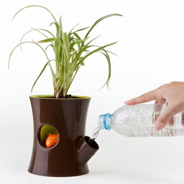 Забуваєте поливати рослини? Чи, може, Ви часто їдете, а за ними нема кому доглядати? Горщик Log&Squirrel від тайської студії Qualy збереже квітам життя, навіть якщо Ви зібралися у довгу відпустку! Секрет полягає в тому, що в горщику подвійне дно ― Ви наливаєте воду в нижню частину, а спеціальними мотузками вона піднімається нагору, до коріння рослини. Науково доведено, що такий спосіб поливу – найбільш корисний для рослини, оскільки він бере рівно стільки води, скільки йому потрібно.