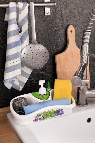 Кухонний аксесуар з ємністю для зберігання та рідкого мила.